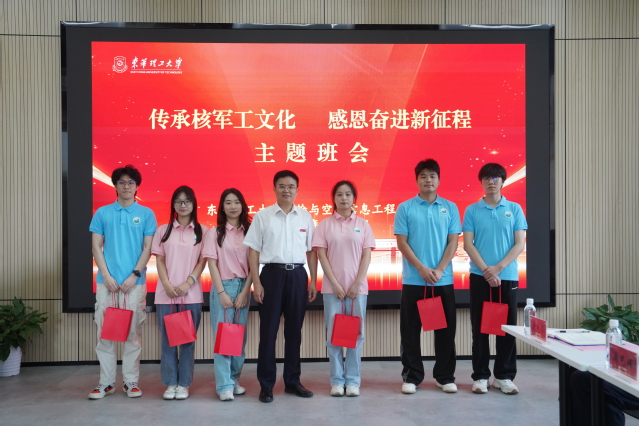 张福庆听取班级建设情况汇报及学生代表发言,对即将顺利完成学业的同学们表示祝贺。他结合自身经历,分享人生感悟,勉励同学们要继续传承和弘扬学校核军工文化,永葆“核心意识,家国情怀”的赤诚之心,秉持“工匠神韵,勇于创新”的治学态度,涵养“军人特质,担当奉献”的精神品格,树立终身学习理念,用专业素养守护自然资源。