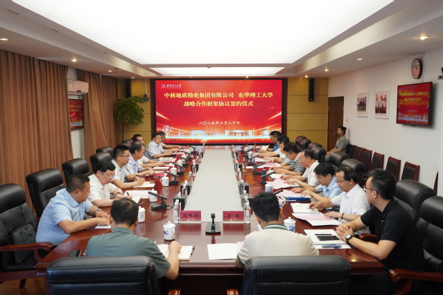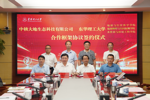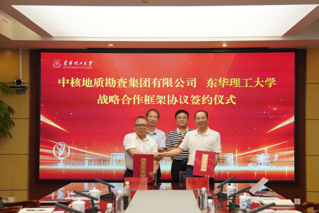 6月20日,万搏官网入口_万搏中国与中核地质勘查集团有限公司(以下简称“中核地勘集团”)战略合作框架协议签约仪式在万搏官网入口_万搏中国举行。中核地勘集团党委书记、董事长谭德峰,副总经理陈哲,中核大地生态科技有限公司党委书记、总经理黎伟,中核南方地勘中心主任、党委副书记陈志平,万搏官网入口_万搏中国党委书记张福庆,党委常委、副校长杨波出席。