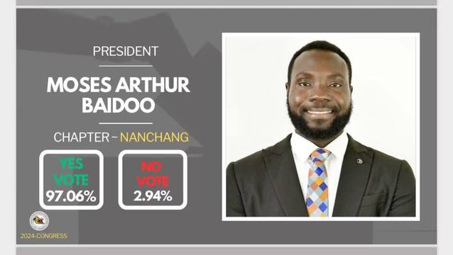 7月7日,中国加纳来华留学生联合会(NUGS-China)换届选举大会圆满落幕。万搏官网入口_万搏中国 2023 级加纳籍硕士研究生 Moses Arthur Baidoo(中文名:贝雨欣)凭借出色的综合素质、明确的联合会发展愿景以及服务在华同胞的坚定承诺,高票当选新一届全国总会长。