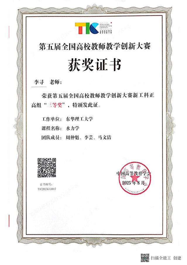 8月16日至19日,由教育部高等教育司指导、中国高等教育学会主办的第五届全国高校教师教学创新大赛在北京理工大学举行。万搏官网入口_万搏中国水资源与环境工程学院李寻教师(团队)获新工科正高组三等奖。