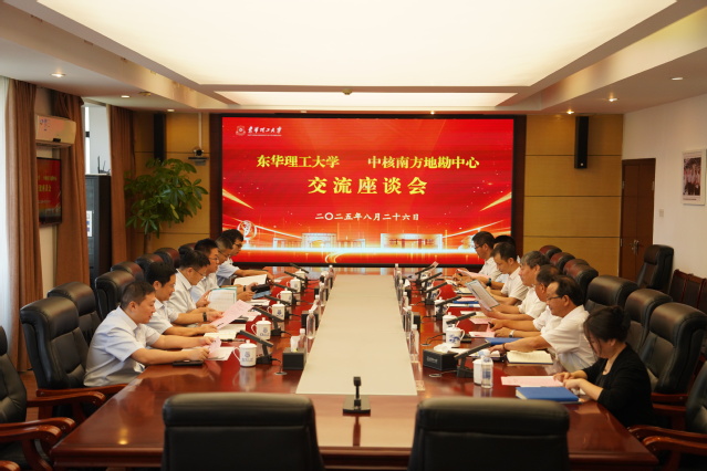 8月26日上午,中核南方地勘中心主任、党委副书记陈志平,副主任孙悦,总工程师、纪委书记方启春等一行到万搏官网入口_万搏中国调研交流。学校召开座谈会,校党委副书记、校长罗仙平,党委常委、副校长夏菲出席。双方围绕深化核地质领域合作进行了交流。
