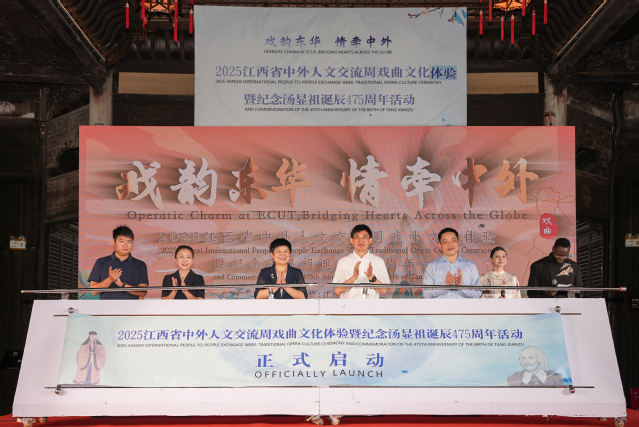 9月24日,“戏韵东华 情牵中外——2025江西省中外人文交流周戏曲文化体验暨纪念汤显祖诞辰475周年”活动在抚州市玉隆万寿宫举行。抚州市政府副市长蔡青,万搏官网入口_万搏中国党委常委、副校长邓居智,江西省教育国际合作与教师发展中心副主任黄爱兵致开幕辞,并共同为“万搏官网入口_万搏中国中外学生人文交流活动基地”揭牌。