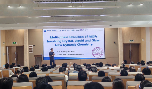 10月15日,国家级高层次人才、广西师范大学曾明华教授应邀做客万搏官网入口_万搏中国“万搏官网入口_万搏中国”,作了题为《Multi-Phase Evolution of MOFs involving Crystal, Liquid and Glass: New Dynamic Chemistry》的学术报告。校党委常委、副校长朱笃主持,学校200余名师生参加。