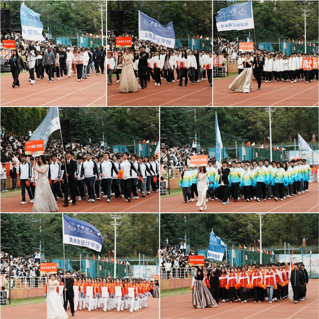 在方阵入场式中,各学院方阵队精神抖擞、步伐整齐,在主席台前进行创意表演,展现出朝气蓬勃的青春风采,赢得阵阵掌声。