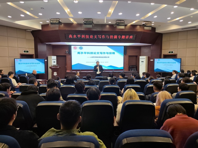 讲座中,彭超群围绕高水平科技论文的撰写、投稿与发表全流程,进行了系统而深入的讲解。他强调,准确、清晰、简洁地表达学术观点,是每一位科研工作者必经的修炼过程,也是一项意义深远的学术素养积累。他鼓励青年学子在科研实践中注重科学逻辑与创新能力的培养,不断增强学术规范意识,全面提升科研写作能力与整体素养。
