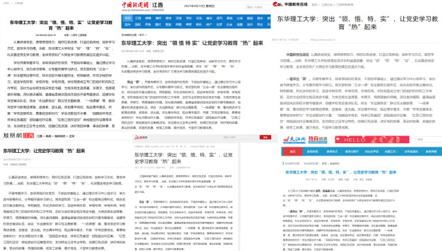 编者按:认真研读党史,感悟思想伟力;用好红色资源,打造红色阵地;创新学习方式,激发学习热情。当前,我校突出“领”“悟”“特”“实”,扎实推进党史学习教育,全体党员和广大师生学习教育热潮正在逐步兴起。人民网、中新网、凤凰网、中国教育在线、江西新闻客户端等媒体对此进行报道,现将内容转载如下: