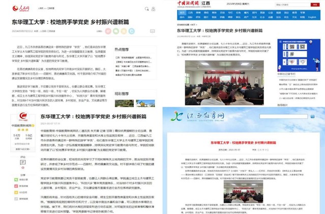 编者按:近日,九江市永修县燕坊镇迎来一群特殊的游学“学员”,他们是来自万搏官网入口_万搏中国土木与建筑工程学院的党员师生们。为进一步加强爱国主义教育、弘扬爱国主义精神,持续深化党史学习教育内容与形式,学校开展了以“校地携手学党史 乡村振兴谱新篇”为主题的党史学习教育。学习强国、人民网、中新网、中国教育新闻网、中国教育在线、网易新闻、凤凰网、江西新闻客户端、中国江西网及江西省教育厅属媒体等主流平台对此进行报道,现将相关报道转载如下: