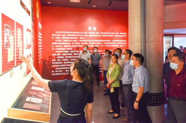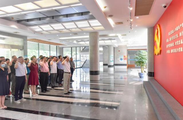 “我志愿加入中国共产党,拥护党的纲领,遵守党的章程……随时准备为党和人民牺牲一切,永不叛党。”参观的全体党员同志在宣誓墙前,纷纷举起右拳,重温入党誓词,面向鲜红的党旗庄严宣誓。