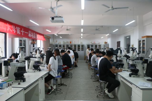 本次大赛分初赛和决赛两个阶段以及专业组和非专业组两个组别。初赛专业组竞赛内容为地学专业课程知识点测试与镜下岩矿鉴定,非专业组竞赛内容为地学基础知识与岩石手标本鉴定。来自地科学院、地控学院、水环学院、测绘学院、土建学院600余名学生参加初赛,经选拔共有6支队伍进入决赛。