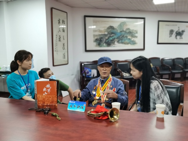 核科学与工程学院2019级辐射防护与核安全专业刘斌凯同学说道:“听着爷爷们铿锵有力地讲述着过去的故事,一幕幕情景如在眼前。印余生老前辈寄语 ——‘今日红色基因我来传,明日使命担当你来承!’表达了对我们寄予的厚望。作为学校国旗护卫队的一员,我一定会学习好专业知识,完成好每一次训练,传承军人品质,积极弘扬爱国主义精神,争做有理想、讲担当、传使命的新青年!” (图/黎明优 荣成章 文/刘惠文 蒋昊)