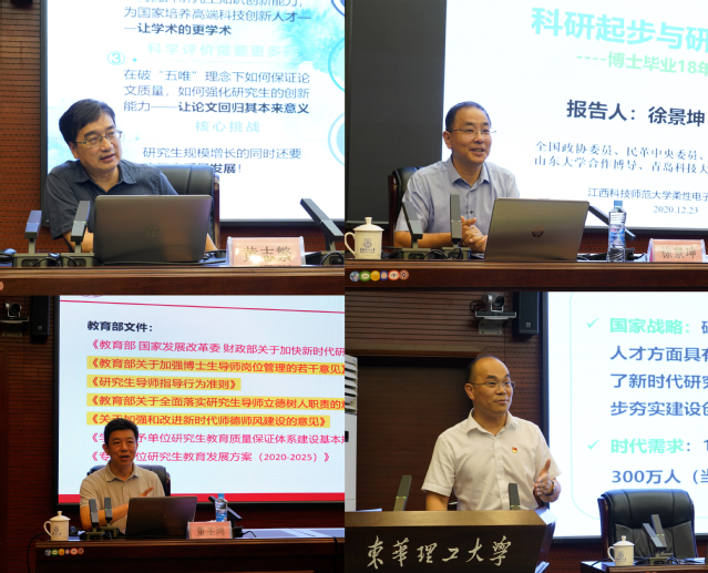 本次培训会共有四个专题报告,南昌大学黄志繁教授作了“研究生教育的新形势和导师的新要求”专题报告,分析了学位与研究生教育改革的新趋势,提出了学位与研究生教育改革的新要求和新理念,如要创新万搏官网入口_万搏中国模式,优化生源招生质量,完善导师奖惩机制等;江西师范大学董圣鸿教授作了“加强师德师风教育,落实立德树人根本任务”的专题报告,分析了国家和省里关于立德树人相关文件精神和要求,指出导师要具备四**宝,即学习师德理论、更新育人思想、培养道德情操、提高专业能力;江西财经大学罗世华教授作了“研究生创新的前提与基石---学术规范与科研诚信”的专题报告,从导师“如何领会学术规范和科研诚信文件精神”“如何避免学术不端问题”“如何打造科研伦理观念”“如何提升道德修养水平”等方面谈了自己的独到见解并提出了相应对策措施;江西科技师范大学徐景坤教授作了“科研起步与研究生培养”的专题报告,从“科研工作”“研究生培养”“行政管理”“团队发展”“个人心得”等多个视角出发,分享了他十八年来指导研究生的经验。