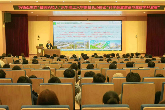 近日,应校团委邀请,国家科学技术进步奖二等奖获得者、首批“全国高校黄大年式教师团队”负责人、第四届“感动江西教育年度人物”、副校长汤彬教授做客核新讲坛,为师生们带来题为“科学装置建设与我校学科发展”的精彩讲座。师生代表500余人到场聆听。