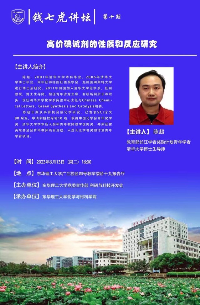 应化学与材料学院邀请,教育部长江学者奖励计划青年学者、清华大学化学系博士生导师陈超来到“万搏官网入口_万搏中国”,以“高价碘试剂的性质和反应研究”为主题开展讲座。欢迎全校师生届时前往聆听。