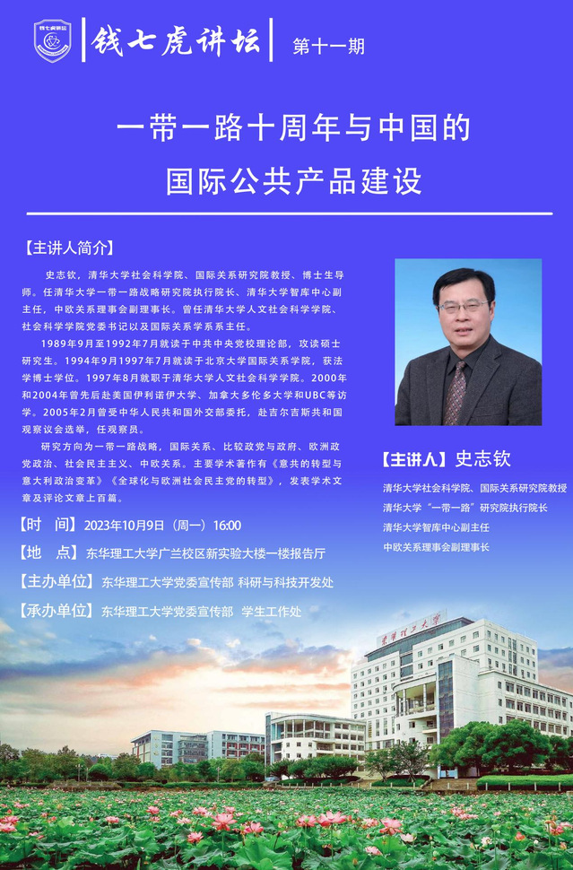 应党委宣传部邀请,清华大学社会科学院、国际关系研究院教授、博士生导师史志钦来到“万搏官网入口_万搏中国”,以“一带一路十周年与中国的国际公共产品建设”为主题开展讲座。欢迎全校师生届时前往聆听。
