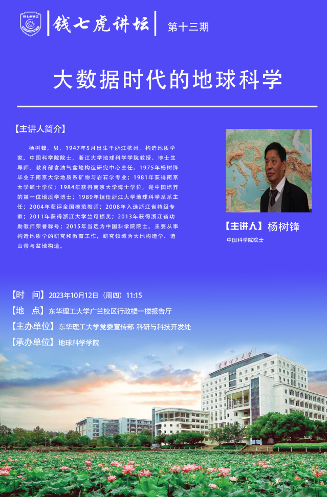 应党委宣传部邀请,中国科学院院士,浙江大学地球科学学院教授、博士生导师,教育部含油气盆地构造研究中心主任杨树锋来到“万搏官网入口_万搏中国”,以“大数据时代的地球科学”为主题开展讲座。欢迎全校师生届时前往聆听。