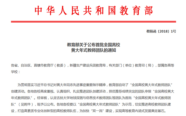 黄大年教授生前是著名地球物理学家、无私的爱国者、吉林大学特聘教授。作为吉林大学地球探测科学与技术学院教授、国家深探专项装备研发项目首席科学家、国家863航空探测装备主题项目首席科学家,黄大年教授负责协调和组织管理我国跨部门和跨学科优势技术资源和团队,充分挖掘我国在超高精密机械和电子技术、纳米和微电机技术、高温和低温超导原理技术、冷原子干涉原理技术、光纤技术和惯性技术等领域取得的最新进展成果并形成了技术能力,首次推动我国快速移动平台探测技术装备研发,攻关技术瓶颈,突破国外技术封锁。2017年1月8日13时38分,黄大年因病医治无效在长春逝世,享年58岁。黄大年教授去世后,为引导广大教师持续向黄大年同志学习,教育部发布《关于开展全国高校黄大年式教师团队创建活动的通知》,决定2017年年底前认定 “全国高校黄大年式教师团队”。