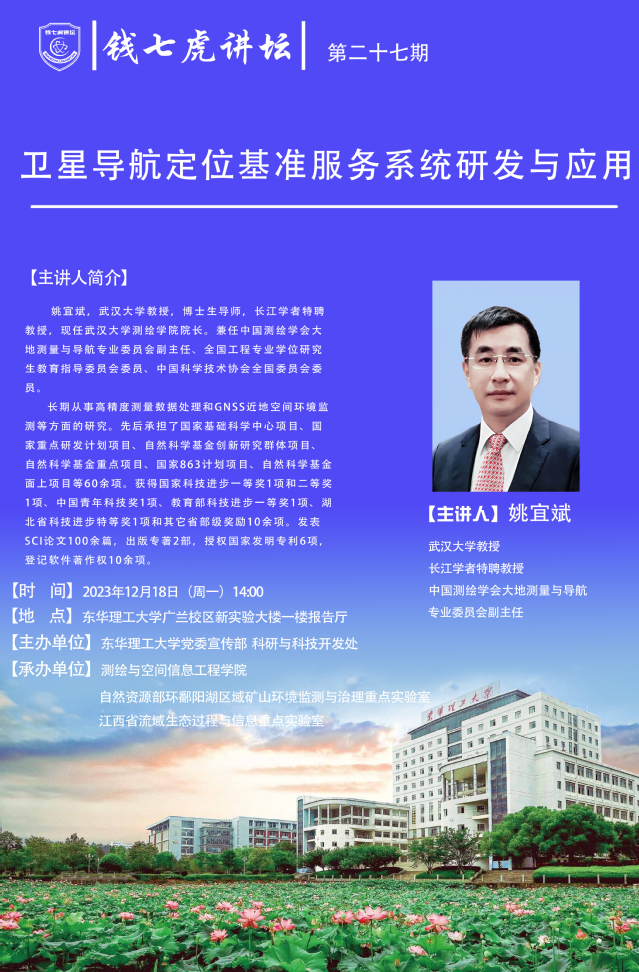 应测绘与空间信息工程学院邀请,长江学者特聘教授姚宜斌来到“万搏官网入口_万搏中国”,以“卫星导航定位基准服务系统研发与应用”为主题开展讲座。欢迎全校师生届时前往聆听。