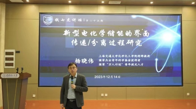 报告结束后,杨晓伟教授和现场师生进行互动,耐心解答了师生们关于多价金属离子电池体系储能的相关问题。本次讲座拓宽了师生们的科研视野,提升了创新思维,促进了学术素养。(文/朱玉玲 图/陶小娜)