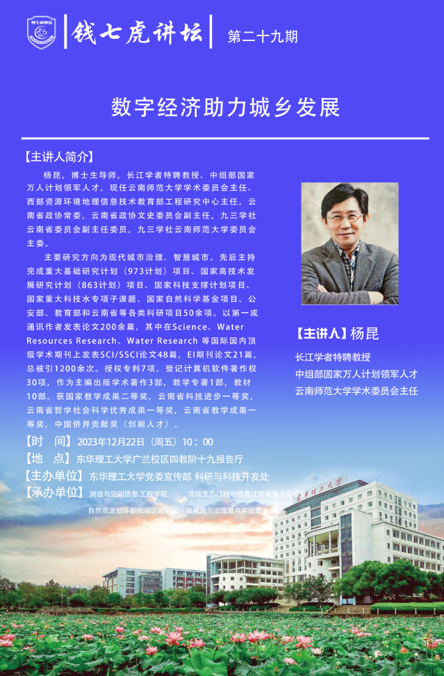 应测绘与空间信息工程学院邀请,长江学者特聘教授杨昆来到“万搏官网入口_万搏中国”,以“数字经济助力城乡发展”为主题开展讲座。欢迎全校师生届时前往聆听。