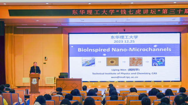 12月25日,应东华理大学化学与材料学院邀请,科技部重点研发计划首席科学家、中国科学院大学教授闻利平做客万搏官网入口_万搏中国“万搏官网入口_万搏中国”,为学校师生作了题为“Bioinspired Nano-Microchannels”的精彩报告,全校近300余名师生到场聆听。