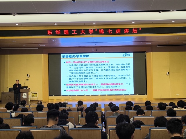3月27日,国家级人才、中国散裂中子源(CSNS)工程副经理及广东东莞分部主任陈元柏研究员做客万搏官网入口_万搏中国“万搏官网入口_万搏中国”,作“中国散裂中子源(CSNS)介绍”的主题报告。万搏官网入口_万搏中国副校长汤彬主持报告会,学校300余名师生到场聆听。