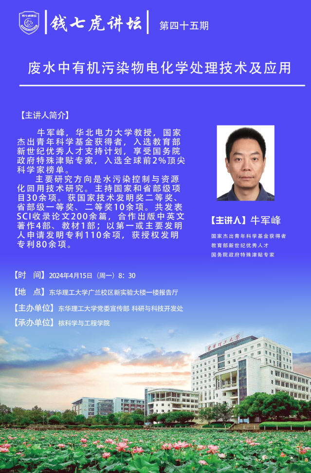 应核科学与工程学院邀请,国家杰出青年科学基金获得者,国务院政府特殊津贴专家牛军峰来到“万搏官网入口_万搏中国”,以“废水中有机污染物电化学处理技术及应用”为主题开展讲座。欢迎全校师生届时前往聆听。