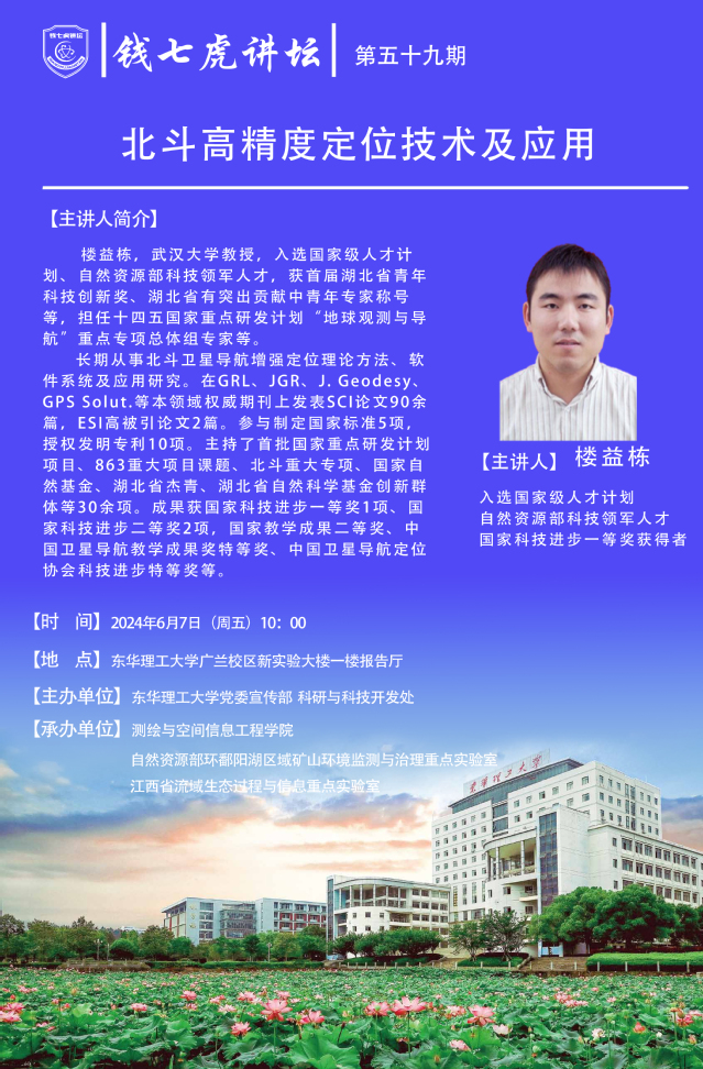 应测绘与空间信息工程学院邀请,武汉大学教授,入选国家级人才计划、自然资源部科技领军人才楼益栋到“万搏官网入口_万搏中国”,以“北斗高精度定位技术及应用”为主题开展讲座。欢迎全校师生届时前往聆听。