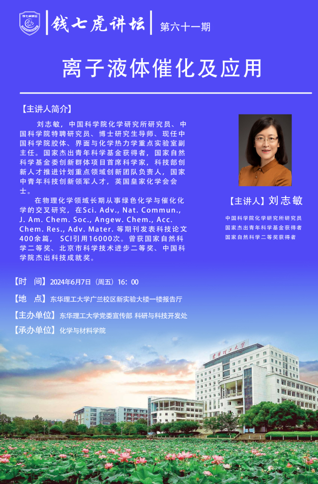 应化学与材料学院邀请,中国科学院化学研究所研究员,国家杰出青年科学基金获得者刘志敏到“万搏官网入口_万搏中国”,以“离子液体催化及应用”为主题开展讲座。欢迎全校师生届时前往聆听。