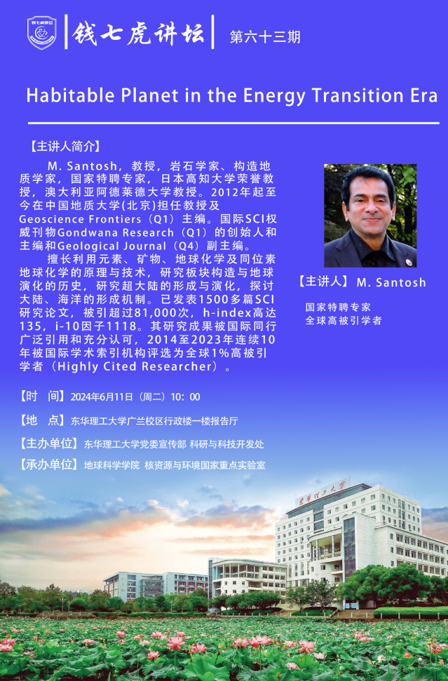 应地球科学学院邀请,日本高知大学荣誉教授,澳大利亚阿德莱德大学教授M. Santosh到“万搏官网入口_万搏中国”,以“Habitable Planet in the Energy Transition Era”为主题开展讲座。欢迎全校师生届时前往聆听。