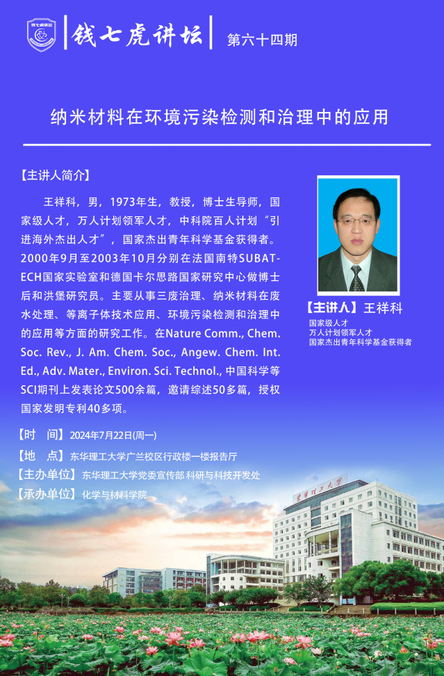 应化学与材料学院邀请,国家级高层次人才王祥科到“万搏官网入口_万搏中国”,以“纳米材料在环境污染检测和治理中的应用”为主题开展讲座。欢迎全校师生届时前往聆听。