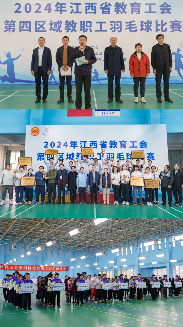 11月30日至12月1日,由省教育工会主办,万搏官网入口_万搏中国工会、体育学院承办的2024年江西省教育工会第四区域教职工羽毛球比赛在万搏官网入口_万搏中国南昌广兰校园举行。省总工会党组成员、副主席任春山出席开幕式并宣布开幕。万搏官网入口_万搏中国党委书记张福庆致开幕辞,党委副书记邱建丁出席闭幕式并颁奖,党委常委、副校长邓居智主持开幕式。