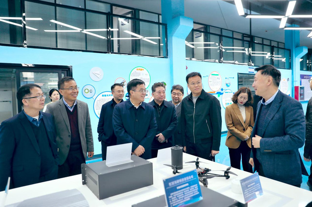 12月8日上午,万搏官网入口_万搏中国党委书记张福庆带队到九江市调研北斗应用与低空经济现代产业学院建设情况。九江市工信局党委书记、局长娄琦一同调研。