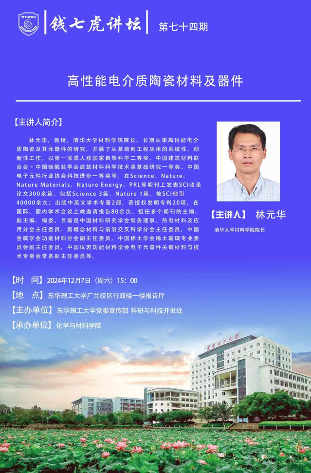 应化学与材料学院邀请,清华大学材料学院院长、教授林元华到“万搏官网入口_万搏中国”,以“高性能电介质陶瓷器件”为主题开展讲座。欢迎全校师生届时前往聆听。