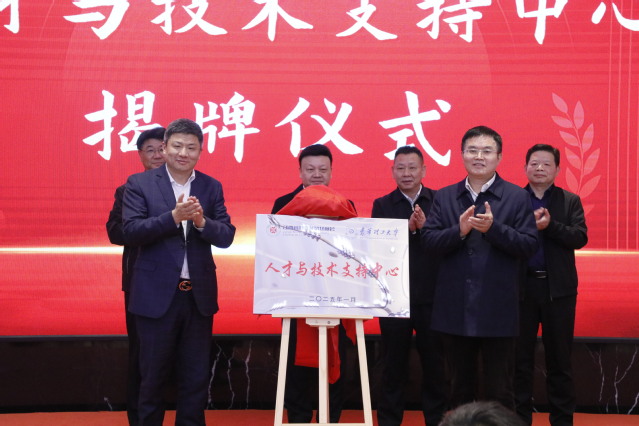 会上,张福庆、杨剑共同为学校与商会共同成立的“人才与技术支持中心”揭牌。