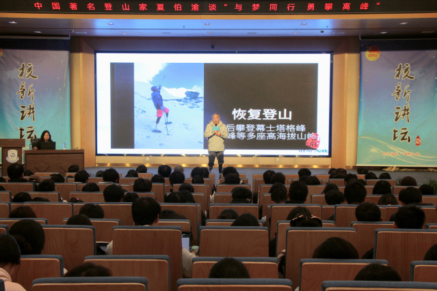 12月31日,无腿攀登珠峰第一人、“时代楷模”“感动中国”候选人、“全国自强模范”、中国著名登山家夏伯渝先生应邀做客核新讲坛,以“与梦同行 勇攀高峰”为主题在万搏官网入口_万搏中国南昌广兰校园新实验大楼一楼报告厅开展讲座。全校300余名师生到场聆听,共同感受榜样力量。