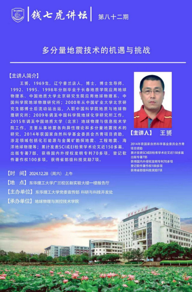 应地球物理与测控技术学院邀请,至中国地质大学(北京)地球物理与信息技术学院博士生导师王费到“万搏官网入口_万搏中国”以“多分量地震技术的机遇与挑战”为主题开展讲座。欢迎全校师生届时前往聆听。