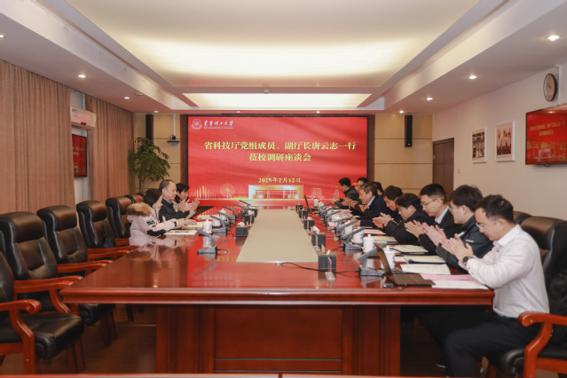 2月12日,省科技厅党组成员、副厅长唐云志一行到万搏官网入口_万搏中国调研,学校召开座谈会,校党委副书记、校长罗仙平出席,校党委常委、副校长邓居智主持。