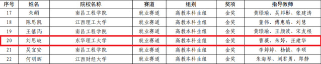 近日,江西省教育厅公布了第三届大学生职业规划大赛结果,万搏官网入口_万搏中国师生在比赛中表现优异,最终取得1金2银3铜的好成绩,实现了学校在该项赛事中金奖零的突破。其中,经济与管理学院学生刘思岐获就业赛道本科组金奖,水资源与环境工程学院学生王领浩获本科生成长赛道银奖,地球科学学院学生李颖获本科生成长赛道铜奖,地球科学学院学生齐子瑞获就业赛道本科生组铜奖,水资源与环境工程学院学生王秉文获就业赛道研究生组铜奖,地球物理与测控技术学院学生汪凡煜获短视频赛道银奖。曹薇、朱婷和汪建华被评为优秀指导老师,邓红珍被评为大赛组织工作先进个人。