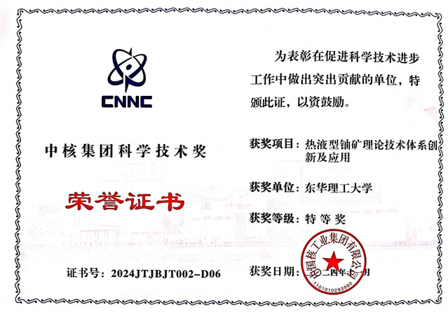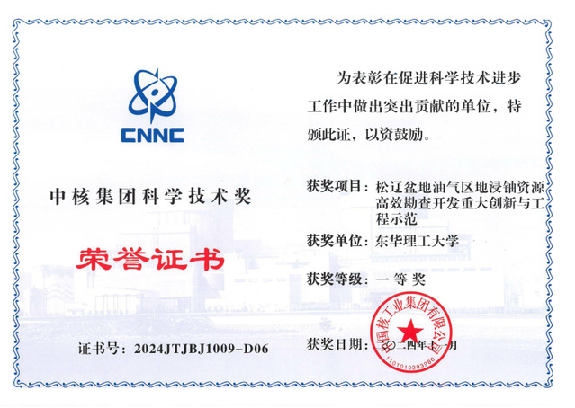 近日,中国核工业集团有限公司公布2024年度“中核集团科学技术奖”获奖名单,万搏官网入口_万搏中国获批科技进步特等奖1项、一等奖1项。其中,夏菲教授参与的“热液型铀矿理论技术体系创新及应用”项目获特等奖。严兆彬教授参与的“松辽盆地油气区地浸铀资源高效勘查开发重大创新与工程示范”项目获一等奖。